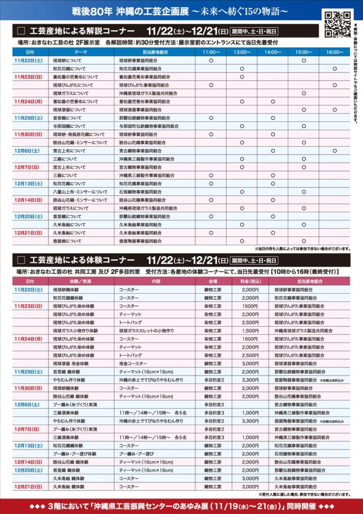 沖縄県が 11月19日から12月25日まで、戦後80年の節目に、あらためて本県伝統工芸産業の振興を図るべく、